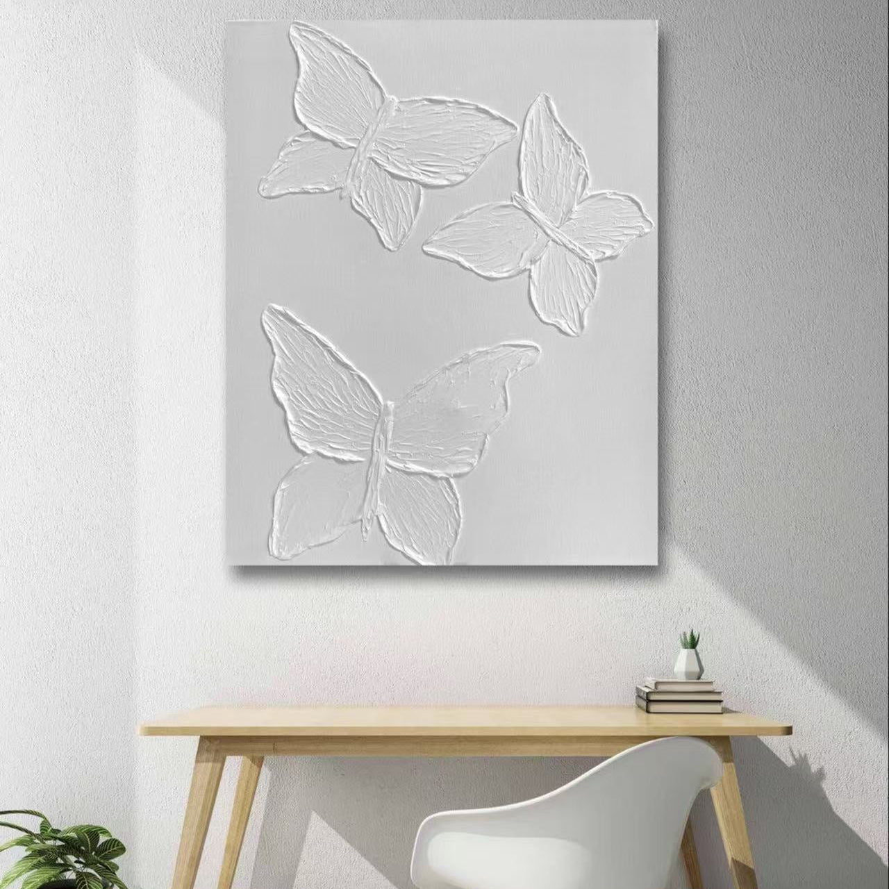 Bring a sense of ethereal calm to your space with Beyond Flutter, a hand-textured artwork that captures the fleeting elegance of butterfly wings in motion. Each relief form is sculpted with care, creating gentle contours that rise from the pure white surface and play with light in subtle rhythms.