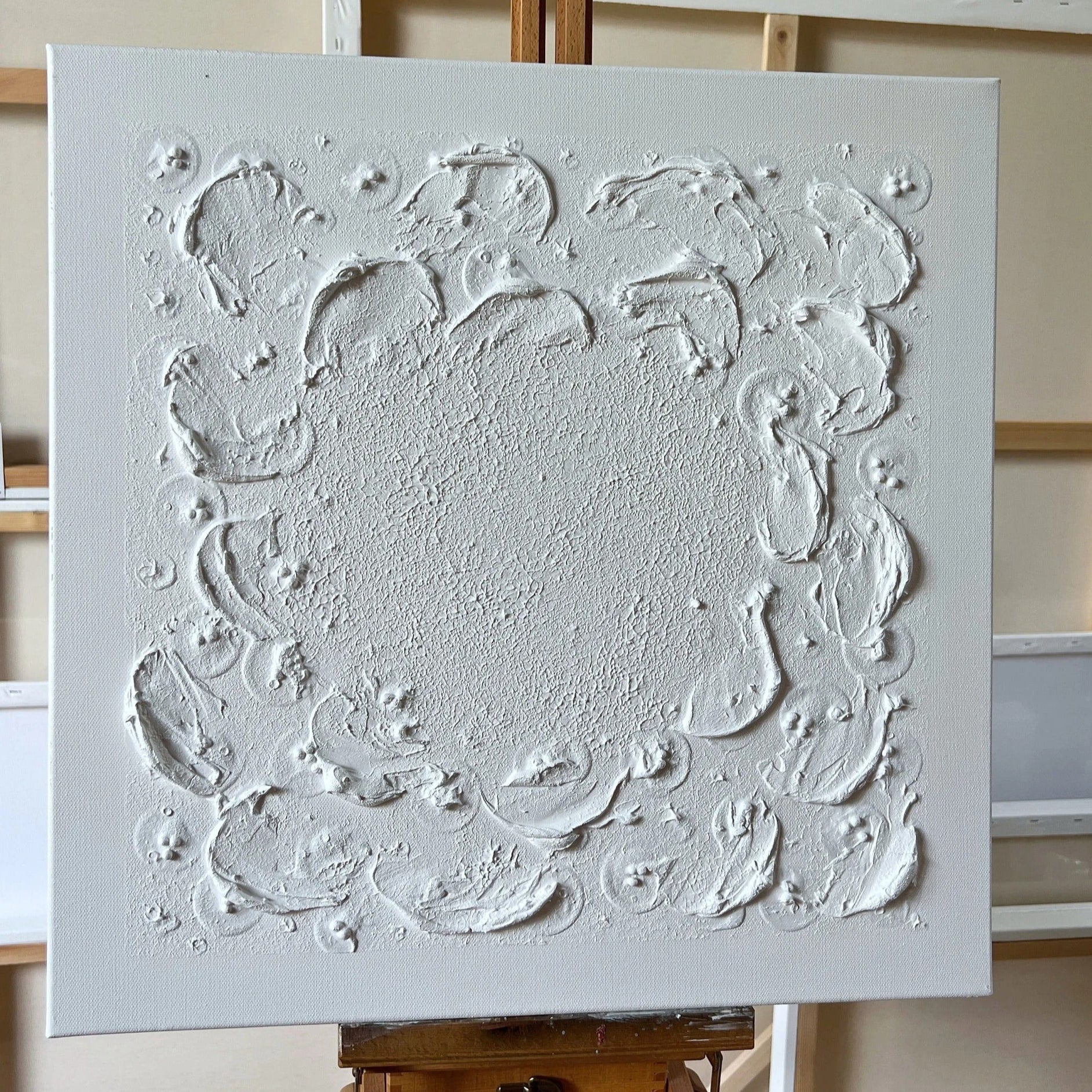 Infuse your home with serene elegance through Noir Echoes, a hand-textured square canvas that embodies the quiet poetry of wabi sabi design. The delicate sculptural swirls form an organic frame around the center, creating a balance of movement and stillness that invites contemplation.