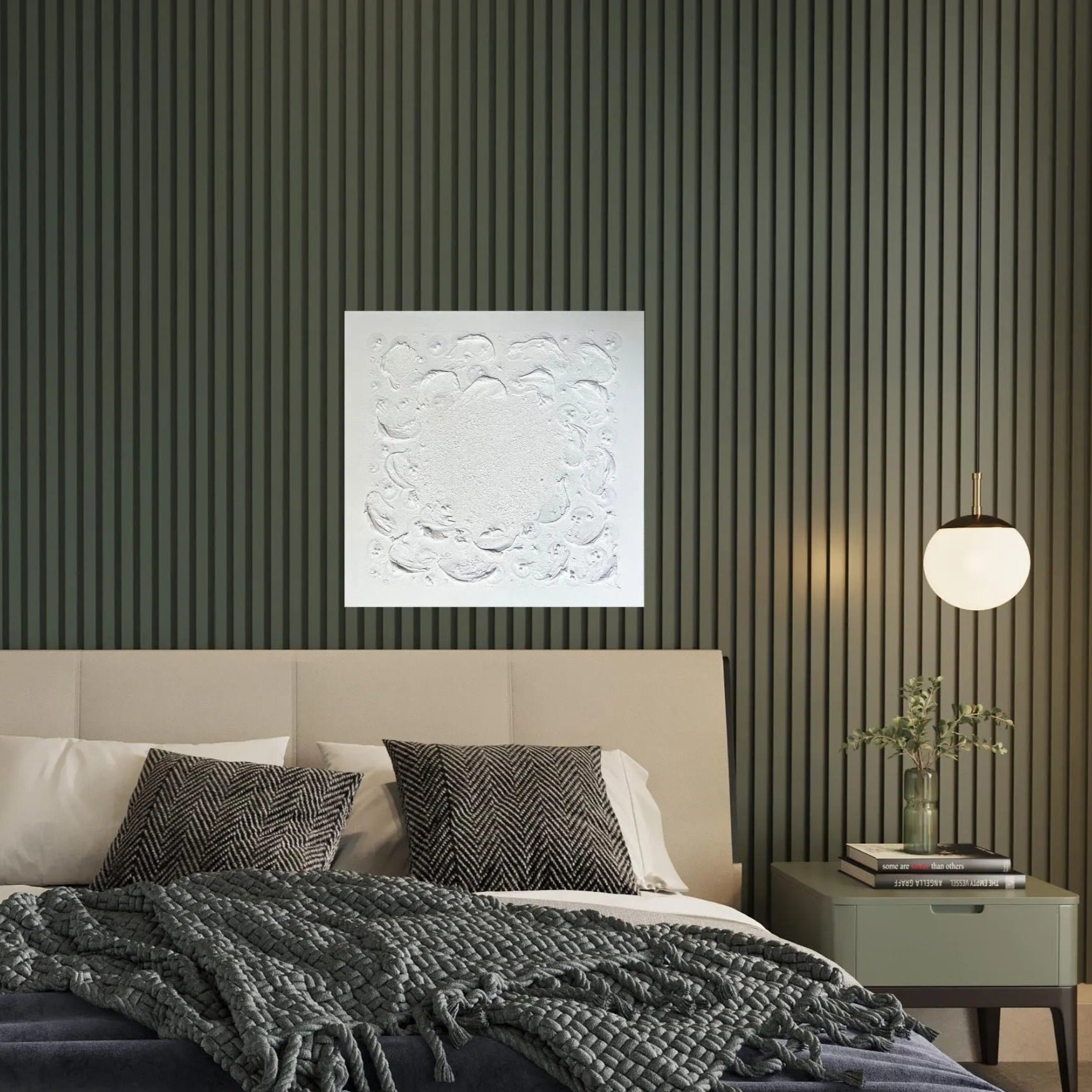 Crafted entirely in pure white, the layered textures catch light and shadow in subtle ways, shifting as the day changes. Its minimalist palette makes it versatile, while the tactile details bring a sculptural quality that turns your wall into a living artwork.
