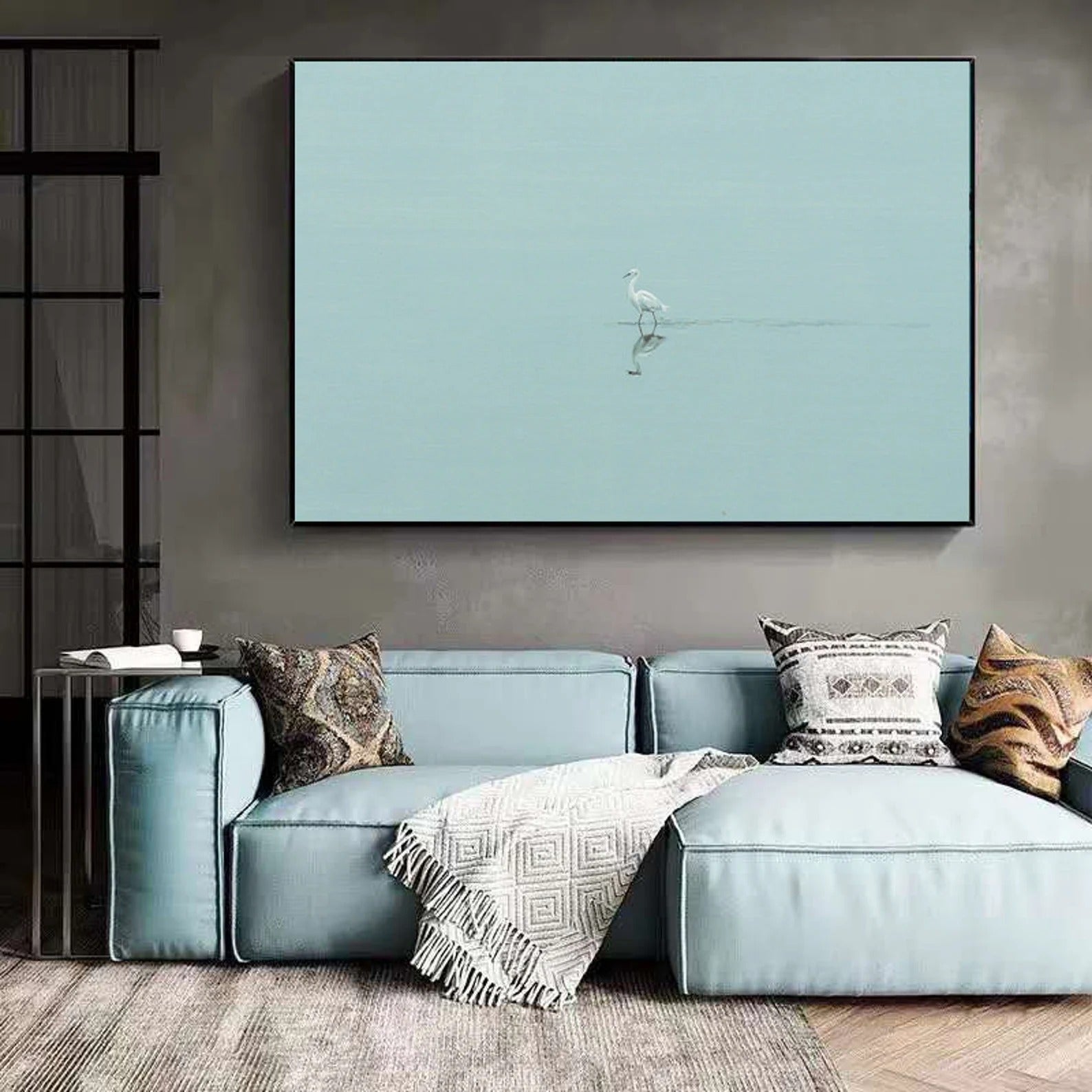 Azure Stillness with White Heron